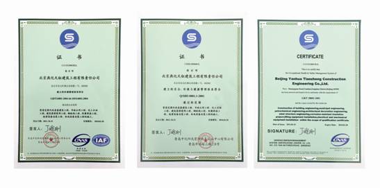 “構(gòu)筑時代精品”,是公司把“每道工序都是承諾”的理念,融進(jìn)質(zhì)量文化的最高追求,并實(shí)現(xiàn)“前期策劃服務(wù),過程精品服務(wù),售后滿意服務(wù),后期延伸服務(wù)”最終承諾。公司認(rèn)真執(zhí)行符合國際標(biāo)準(zhǔn)的質(zhì)量保證體系標(biāo)準(zhǔn),以確保從投標(biāo)、簽訂合同、工程施工、竣工驗(yàn)收、后期服務(wù)的全過程質(zhì)量控制。公司改制以來,所承建的工程項(xiàng)目以上都參加北京市結(jié)構(gòu)長城杯檢查和省部級優(yōu)質(zhì)工程檢查。施工工地都按照北京市及其所在地域的文明安全工地標(biāo)準(zhǔn)施工,對具備一定規(guī)模的工程,均參加市級安全文明工地(或樣板工地)檢查和評比。
