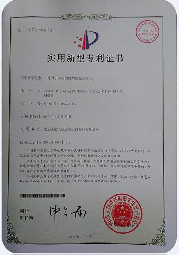 近期,公司申請的實用新型《一種用于車床的斜墊鐵加工卡具》,被國家知識產(chǎn)權(quán)局授予實用新型專利,發(fā)明人有彌志勇、郭永超、聶鵬、牛海潮、王金龍、李東林、田大平、趙德彬。這是公司獲得的第二項專利。